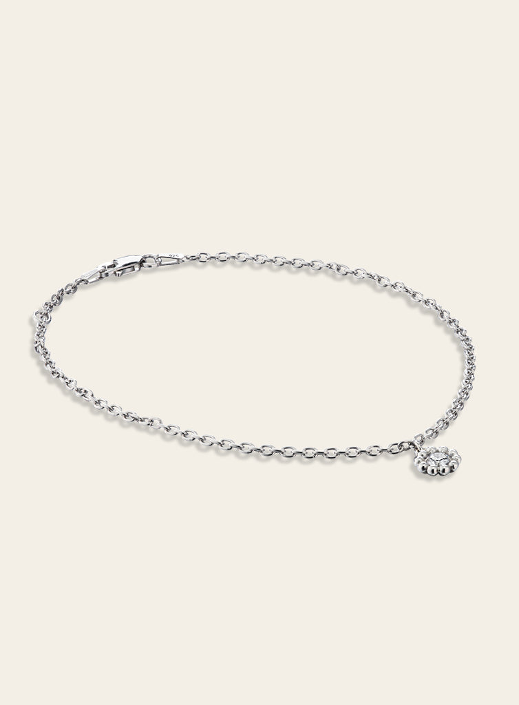 The latest addition to our beloved Daisy collection is this anklet with a clear stone—just imagine how stunning it will look paired with your favorite dress!