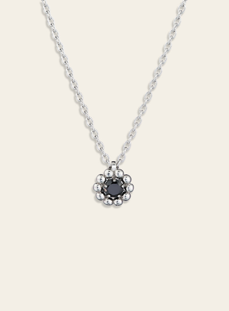 The smaller pendant from our beloved Daisy collection features a black stone—just imagine how stunning it will look paired with your favorite dress! Also available in pink, blue, and clear.