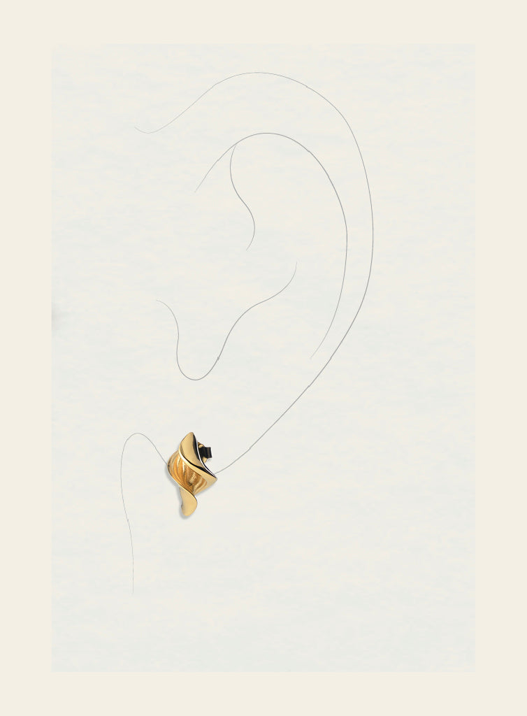 The shell-like shape brings a surprising detail to the look of the piece. A simple, clear, yet personal stud earring with a playful design.