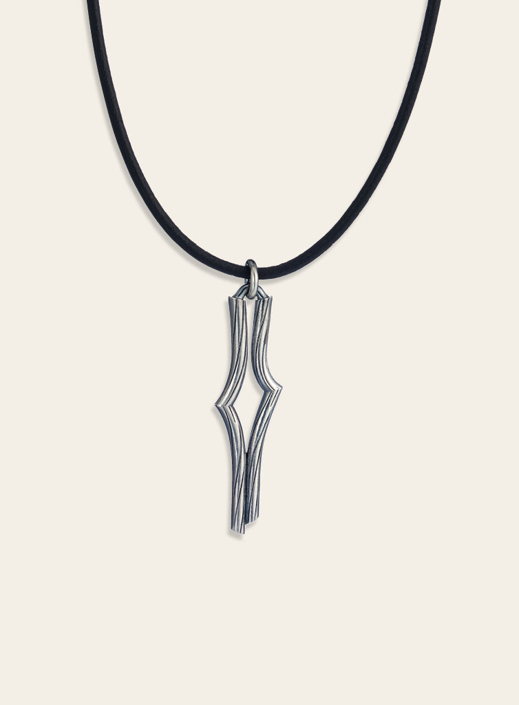 The pendant from the Hiking collection is available with a silver chain as well as with black and brown leather cords.Vaellus is a tribute to the lines carved by nature and the freedom of discovery. Its sculptural form captures the essence of northern fells and the organic power of the forest. The design preserves a moment from the trail, where every curve carries a sense of adventure and the quiet stillness of the wild.