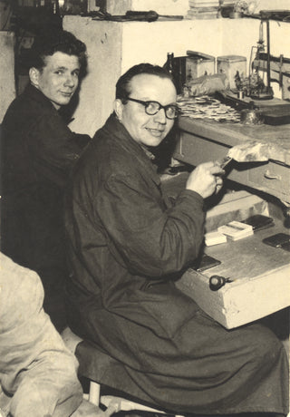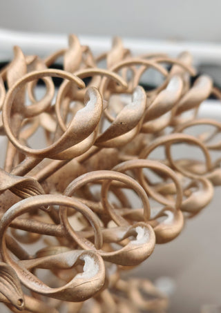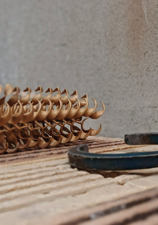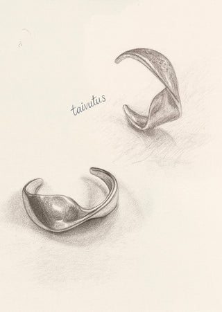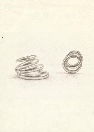 Two spiral-shaped jewelry pieces attached with a loop, which brings three-dimensionality and movement to the jewelry.