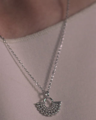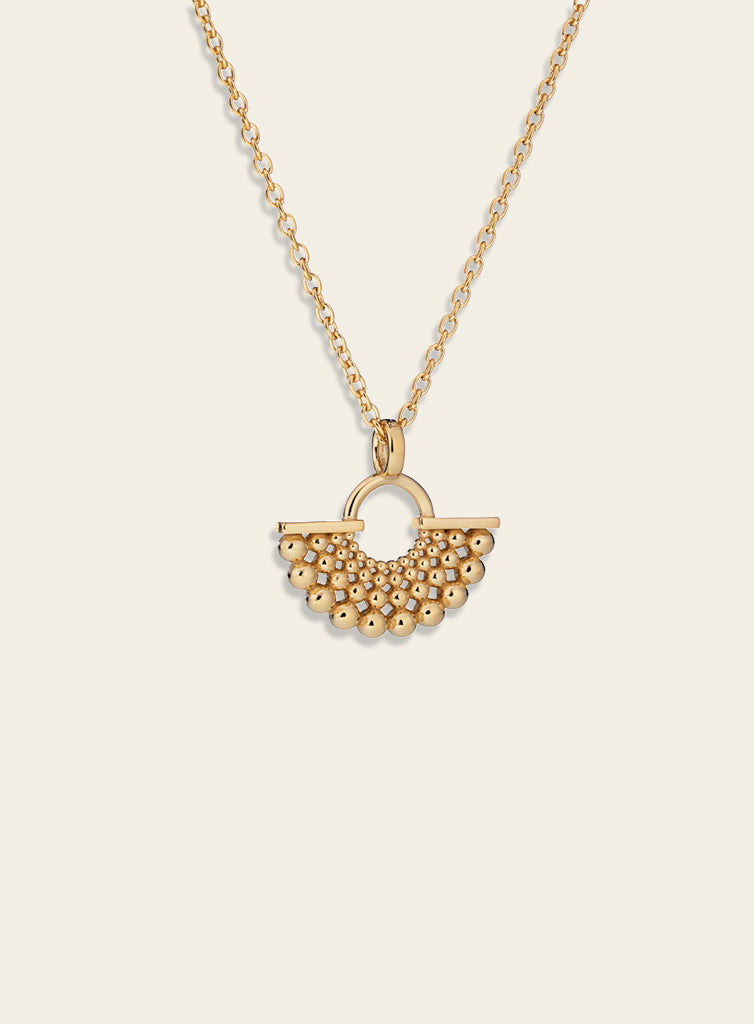 The size of the pendant is 19x18mm. The chain length is adjustable to 45/50 cm.Aika is an encounter between clear architectural lines and circular forms. The rhythm of its composition reinterprets classical aesthetics for the present day. A timeless ensemble, its layered design carries the continuum of history and ancient beauty with renewed, contemporary strength.