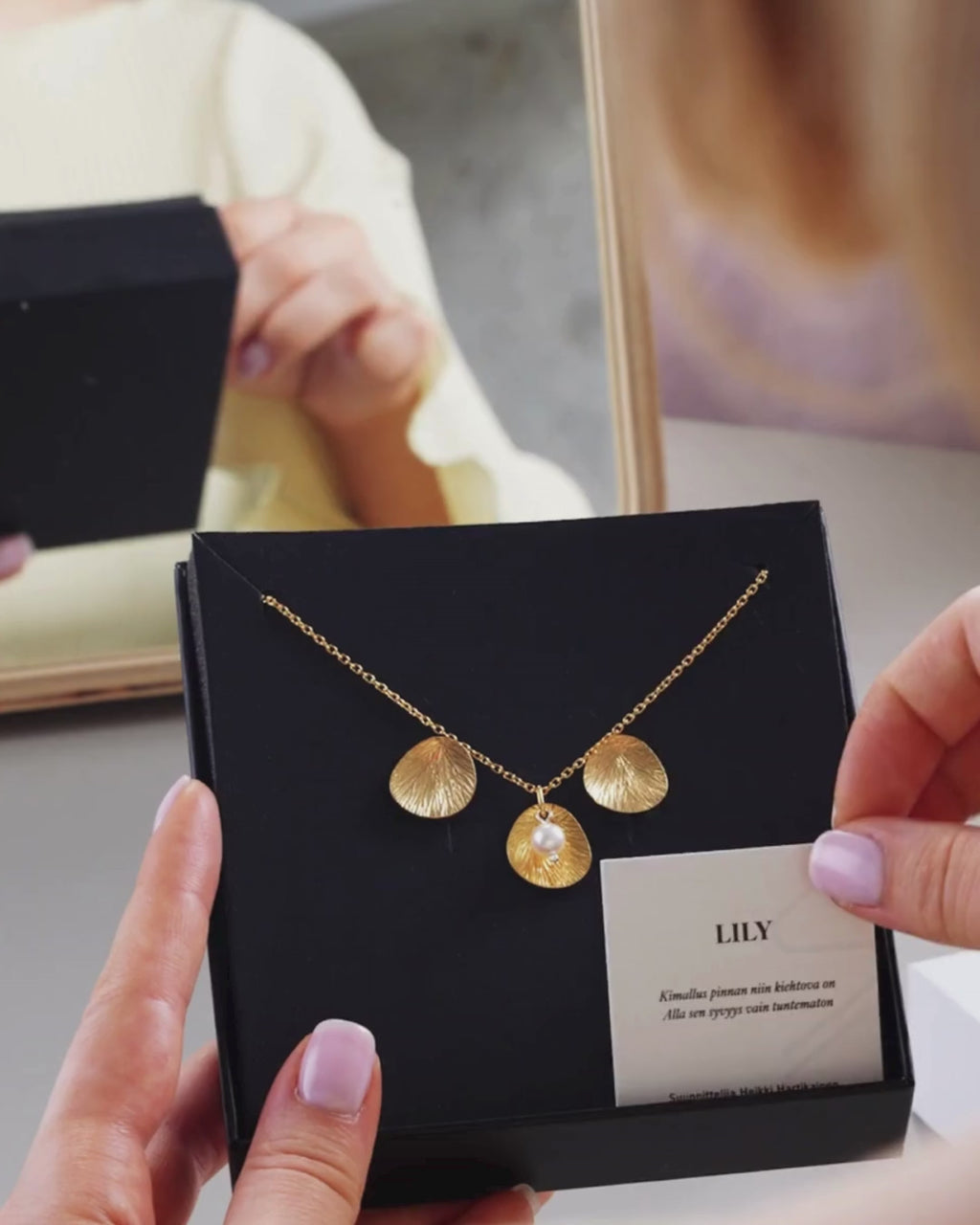 Lily is an encounter between subtle elegance and airy lightness. Its organic petals and radial surface structure capture the movement of light, creating multidimensional depth within the silver. Each surface lives in its own way, making every piece unique. Together, they form a harmonious ensemble where delicacy and strength coexist.
