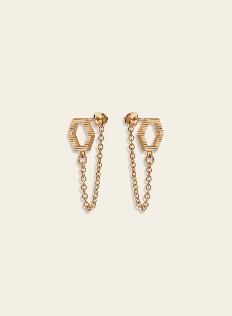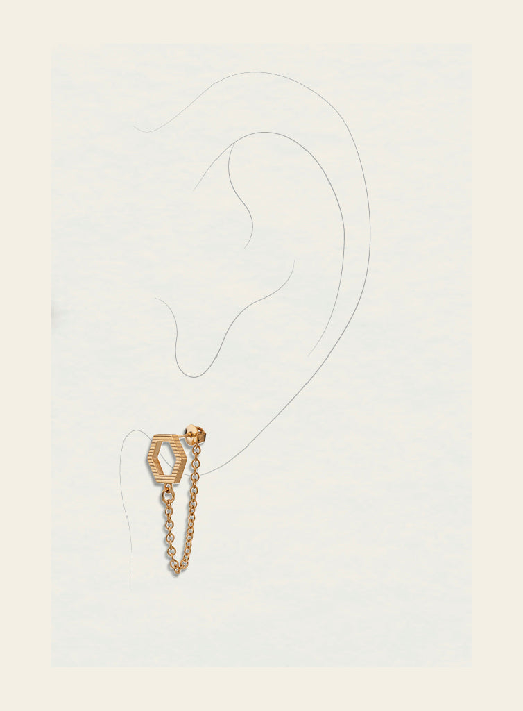 The honeycomb-inspired shape and lightweight chain of the Bee Mine earrings add movement to your outfit. The chain ensures that the stud stays with you wherever you go.