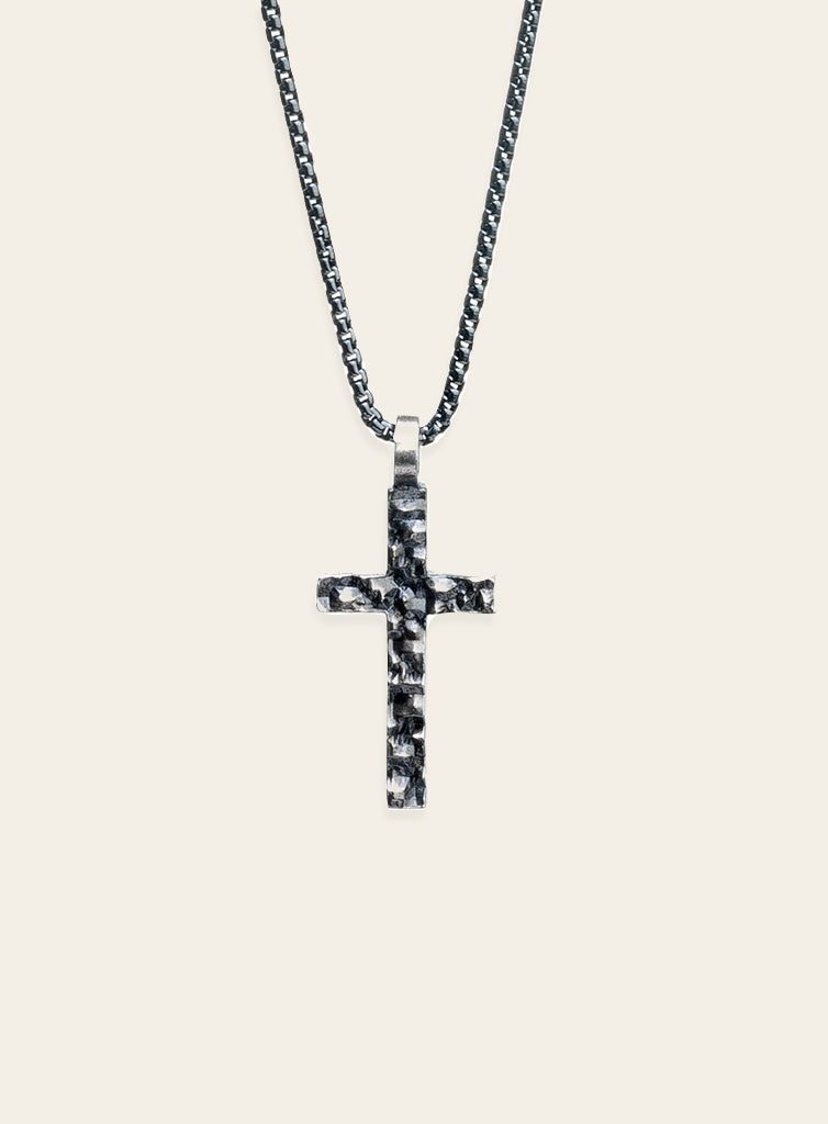 The cross measures 13 × 29 mm, and the chain length is adjustable to 42/45/50 cm. If you wish, we can laser engrave a text of up to eight characters on the cross.