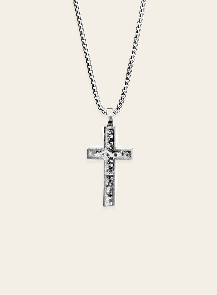 The cross measures 13 × 29 mm, and the chain length is adjustable to 42/45/50 cm. If you wish, we can laser engrave a text of up to eight characters on the cross.